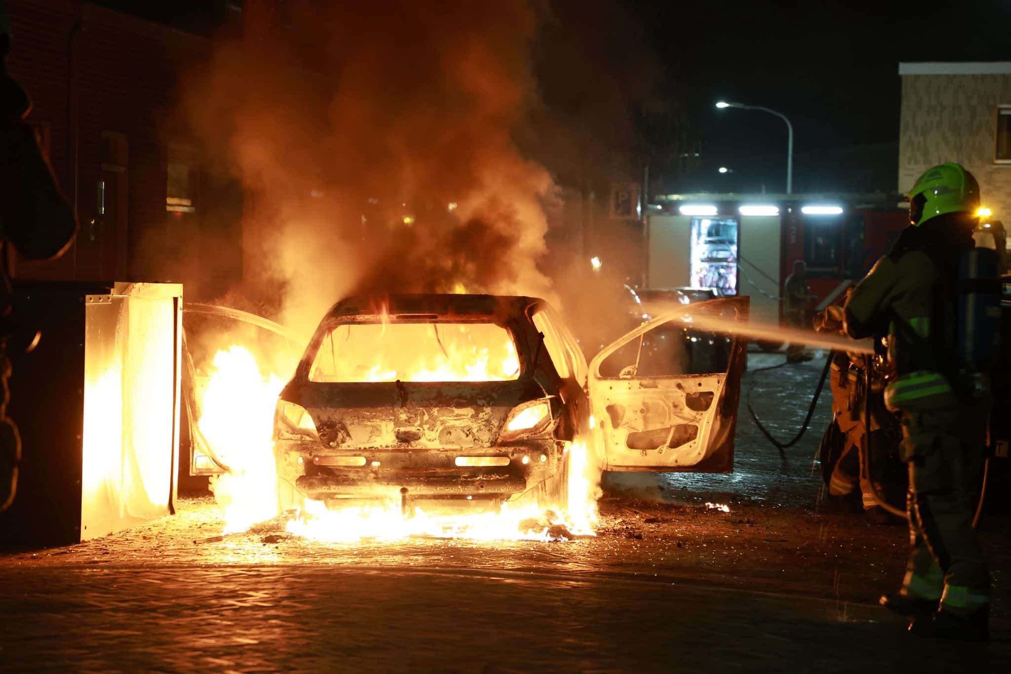 De brandweer, die eerst de actie van de politie afwachtte, bluste de auto vlak na de arrestatie. De politie doet op dit moment onderzoek en is op zoek naar getuigen. “Ook vragen wij mensen met camerabeelden om deze met ons te delen.”