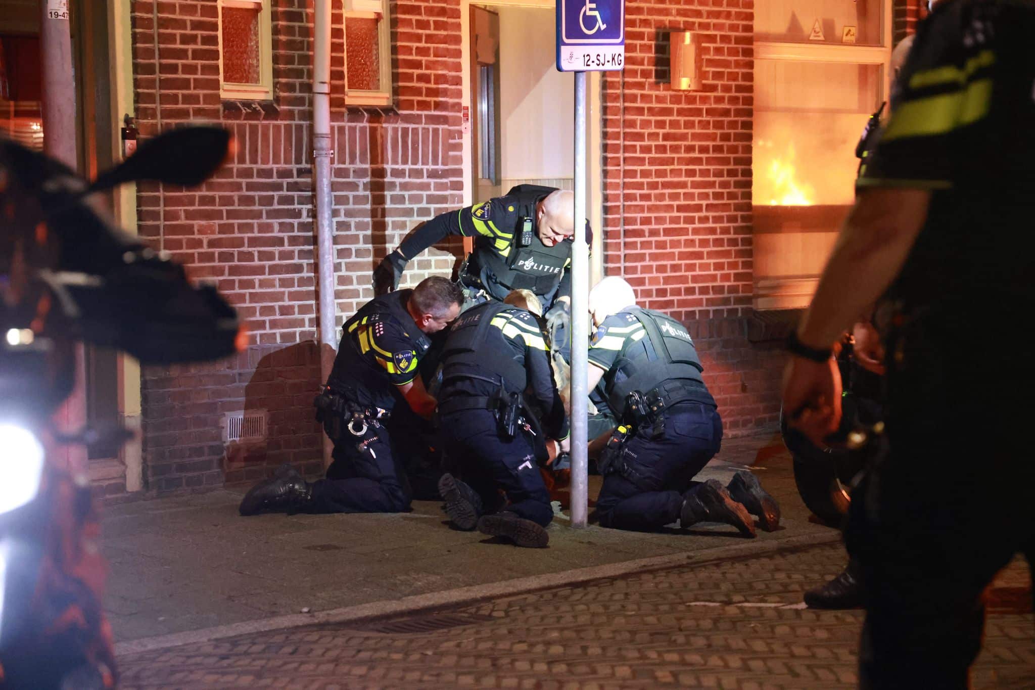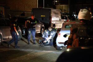 Politie grijpt met getrokken wapens en diensthond in op Zwaardstraat na autobrand