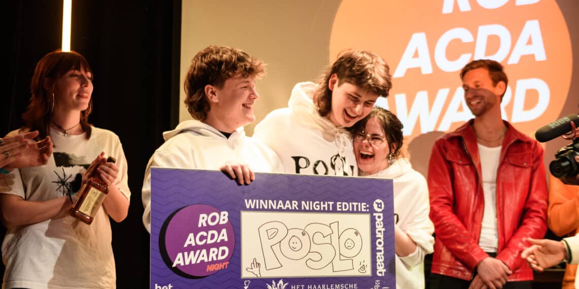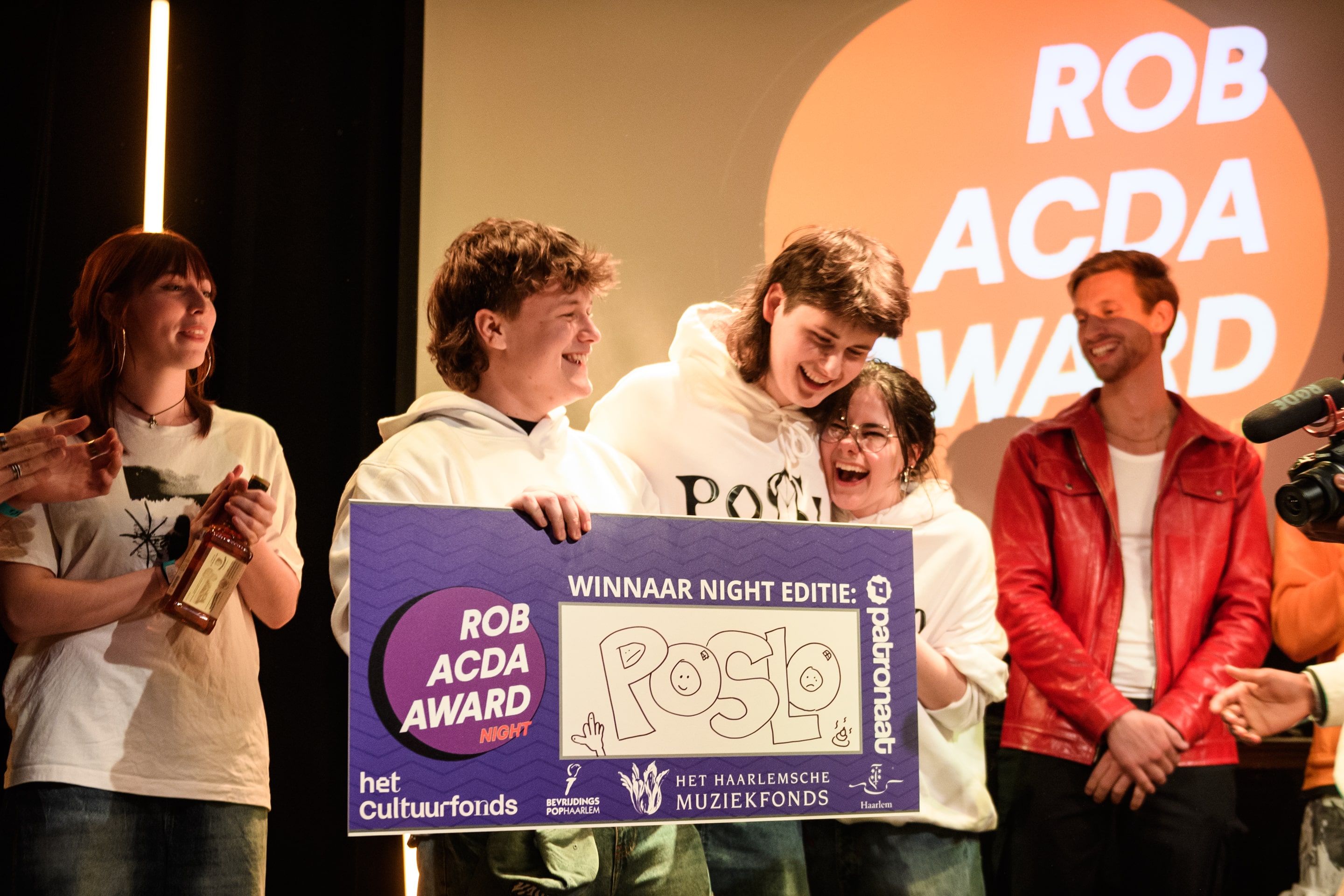 Poslo heeft de Night-editie van de Rob Acda Award gewonnen. Met hun krachtige performance en uitgesproken teksten wist de Haarlemse hiphopgroep gisteravond zowel het publiek als de jury te overtuigen. De winst betekent onder meer een optreden in de Grote Zaal van Patronaat en studiohuur om aan nieuwe muziek te werken.