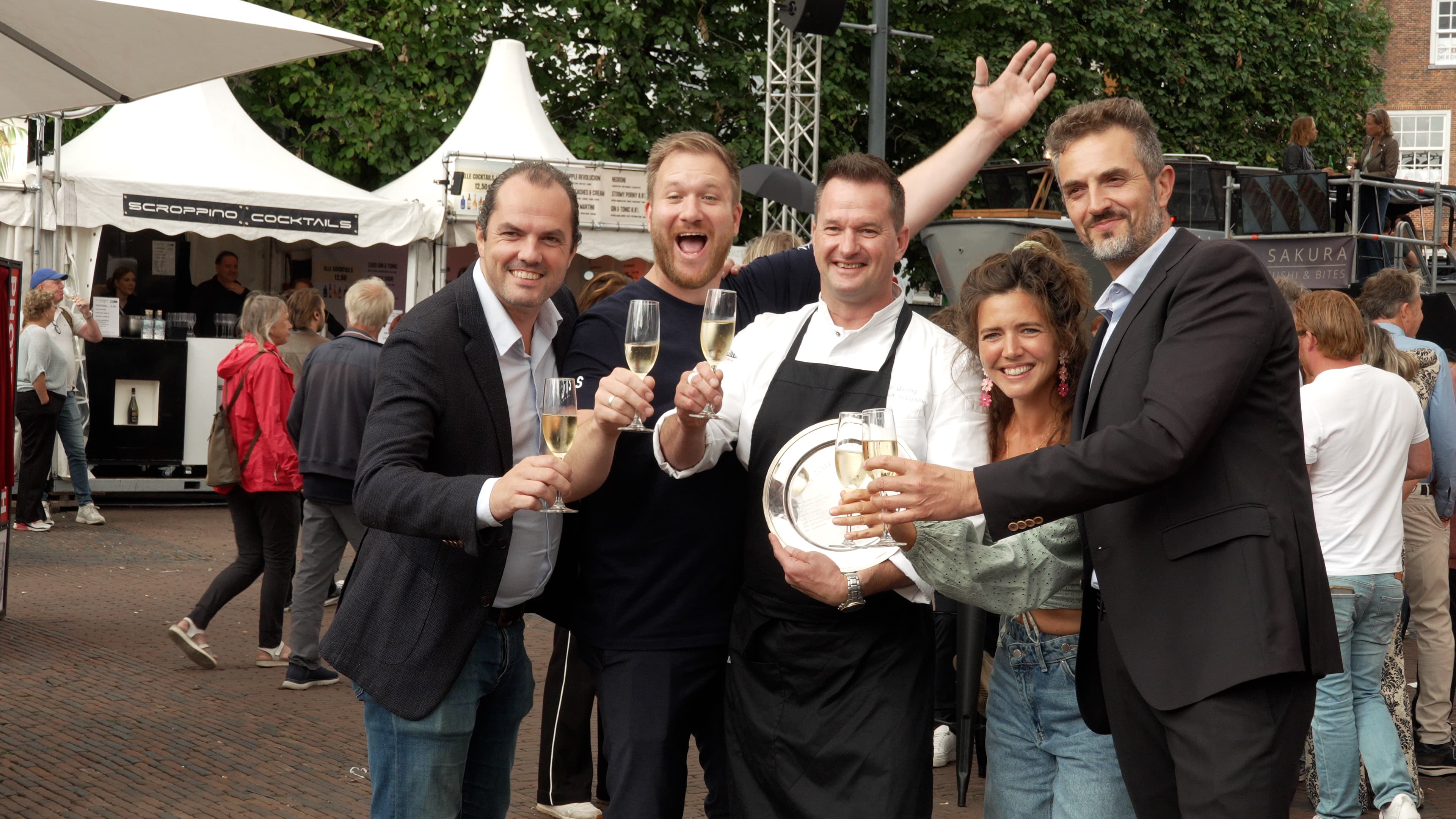 De jury proefde de inzendingen vanaf het skydeck, met uitzicht over de bruisende Grote Markt. “Het is geweldig om te zien hoe vroeg het hier al volstroomt”, zei jurylid Pascal Beeren, eigenaar van restaurant De Bokkedoorns. Hij werd vergezeld door de Italiaanse wijnboer Filippo Butussi en de Haarlemse food-influencer Charlotte Hansen.
