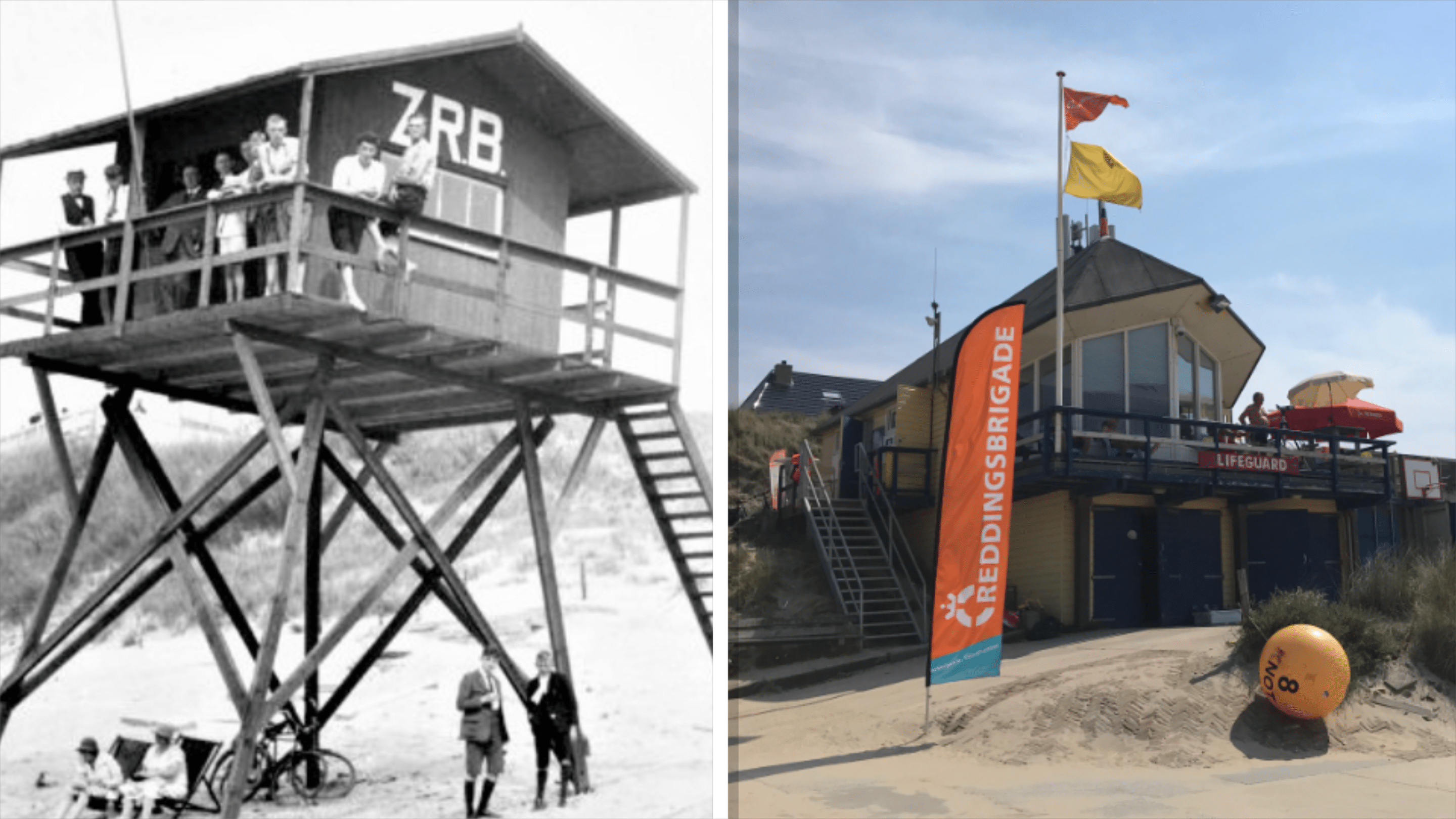 Na de officiële start op 27 maart 1922 is er eerst alleen een linnen tent op het strand. Maar al snel komt er een houten post op palen aan het zuiderstrand en wordt er in 1925 een houten motorboot aangeschaft. Nu beschikt de reddingsbrigade ook over een post aan de noordkant van de boulevard.