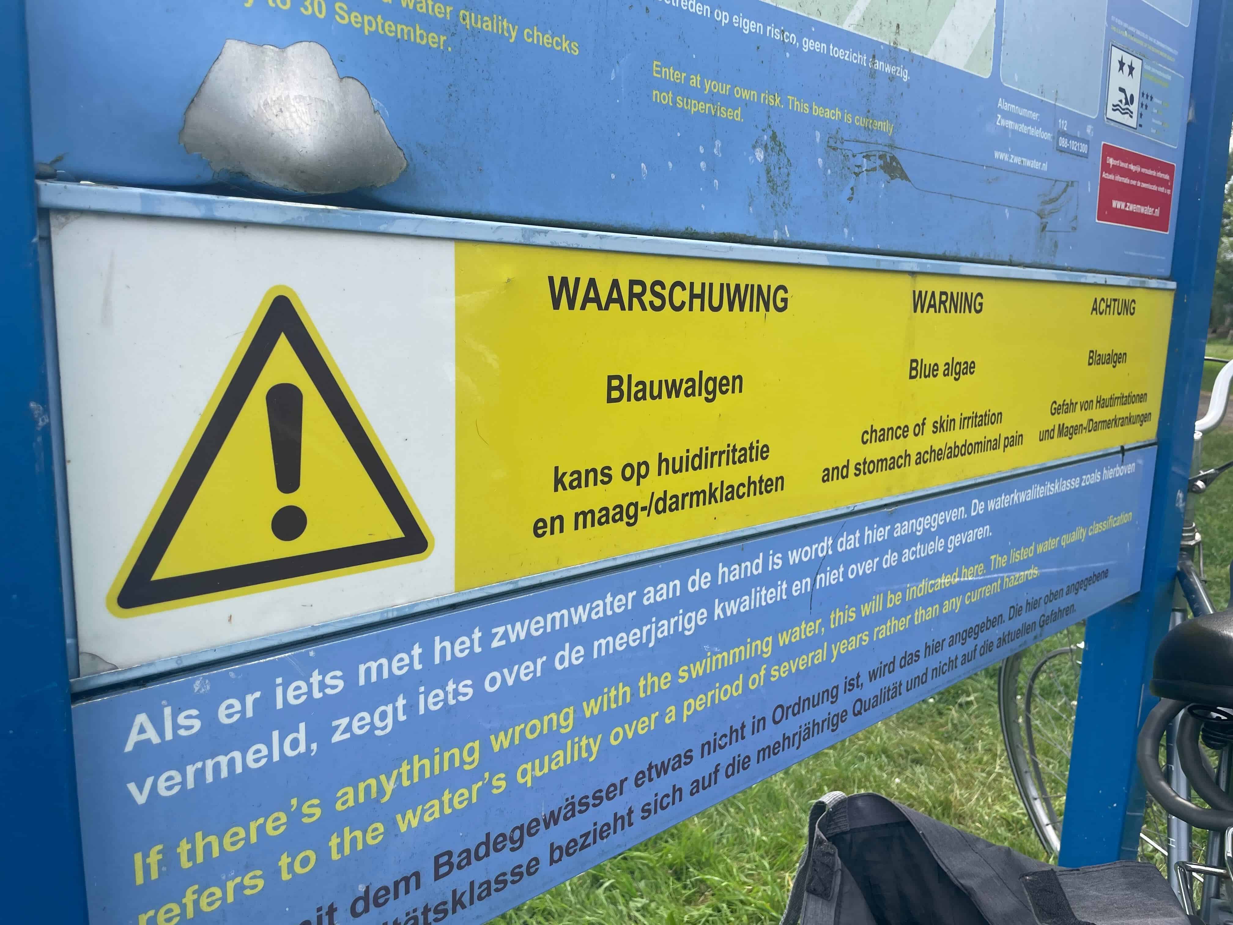 Bij een waarschuwing voor blauwalg is het niet verboden om te zwemmen. Wie een duik neemt moet zelf beoordelen of er een risico is voor de gezondheid, bijvoorbeeld in het geval van algenbloei. Er zijn waarschuwingsborden geplaatst bij de Veerplas en Molenplas. Op deze website is de actuele zwemwaterkwaliteit te zien.