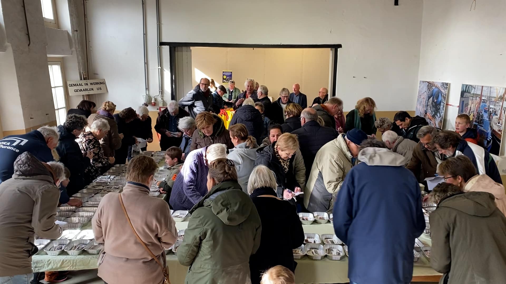 De lange rij voor het historische gebouw verraadt dat veel dorpelingen kiezen voor de ruilbeurs. Een man die niet kan wachten tot hij binnen is en buiten in een hoekje al begint te ruilen meldt het volgende: “We kiezen voor plaatjes en niet voor praatjes.”