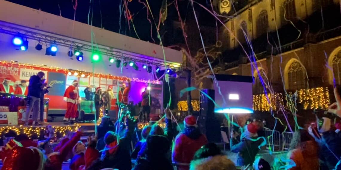 “We staan hier met ons allen, hebben plezier en vieren kerst. Ondanks dat het niet doorgaat, denk ik dat het evenement goed gelukt is”, meent Anne, die bijval krijgt van haar vriendinnen. Gezien de hoeveelheid hossende kerstmannen en vrouwen op de Grote Markt lijken ze gelijk te hebben. Honderden uitgedoste mensen zijn ondanks de gladheid op het evenement afgekomen.