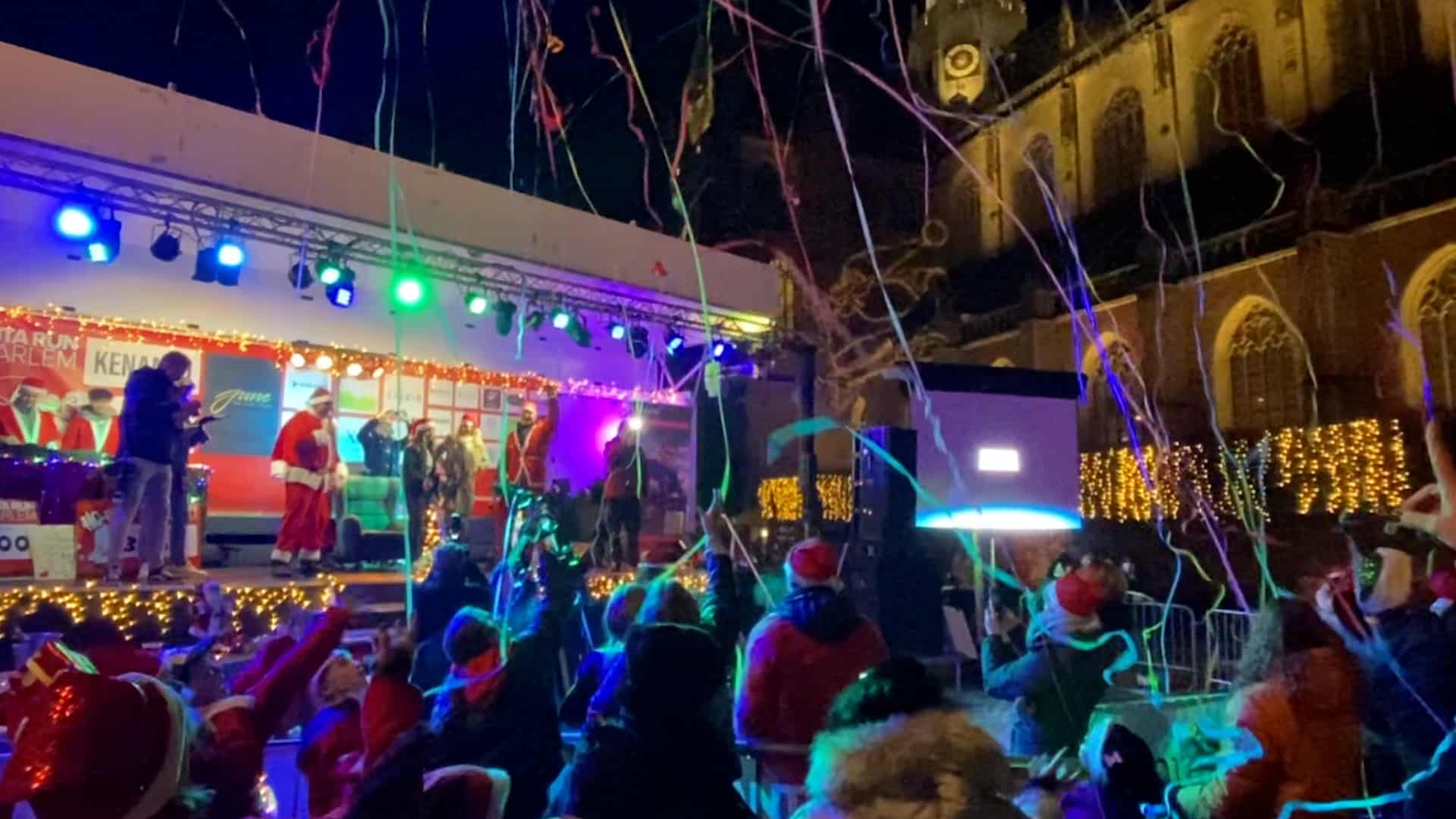 De drie studentes komen al vroeg aan op de Grote markt waar het al redelijk druk begint te worden. Na twee jaar waarin de run door de coronapandemie niet door kon gaan, heeft men er duidelijk zin in: het plein loopt vol met kerstmannen en vrouwen.