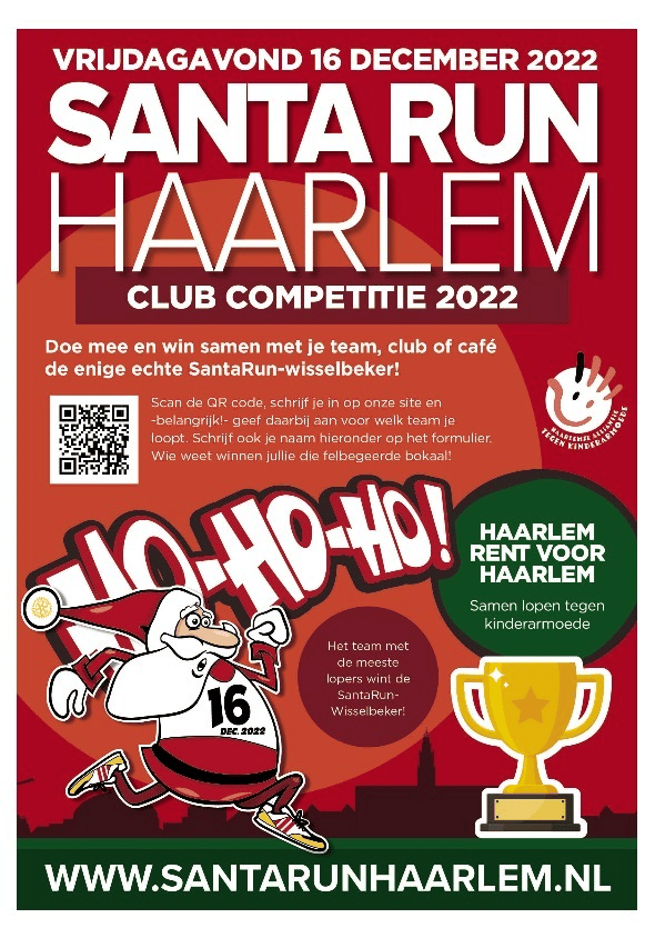 De zevende editie van de SantaRun vindt op 16 december plaats in Haarlem. Voor het eerst houdt het evenement een clubcompetitie om zoveel mogelijk mensen op te trommelen. Honderden hardlopers staan klaar om geld in te zamelen voor de Haarlemse Alliantie tegen Kinderarmoede. Het credo dit jaar is “Haarlem rent voor Haarlem: samen tegen kinderarmoede.”