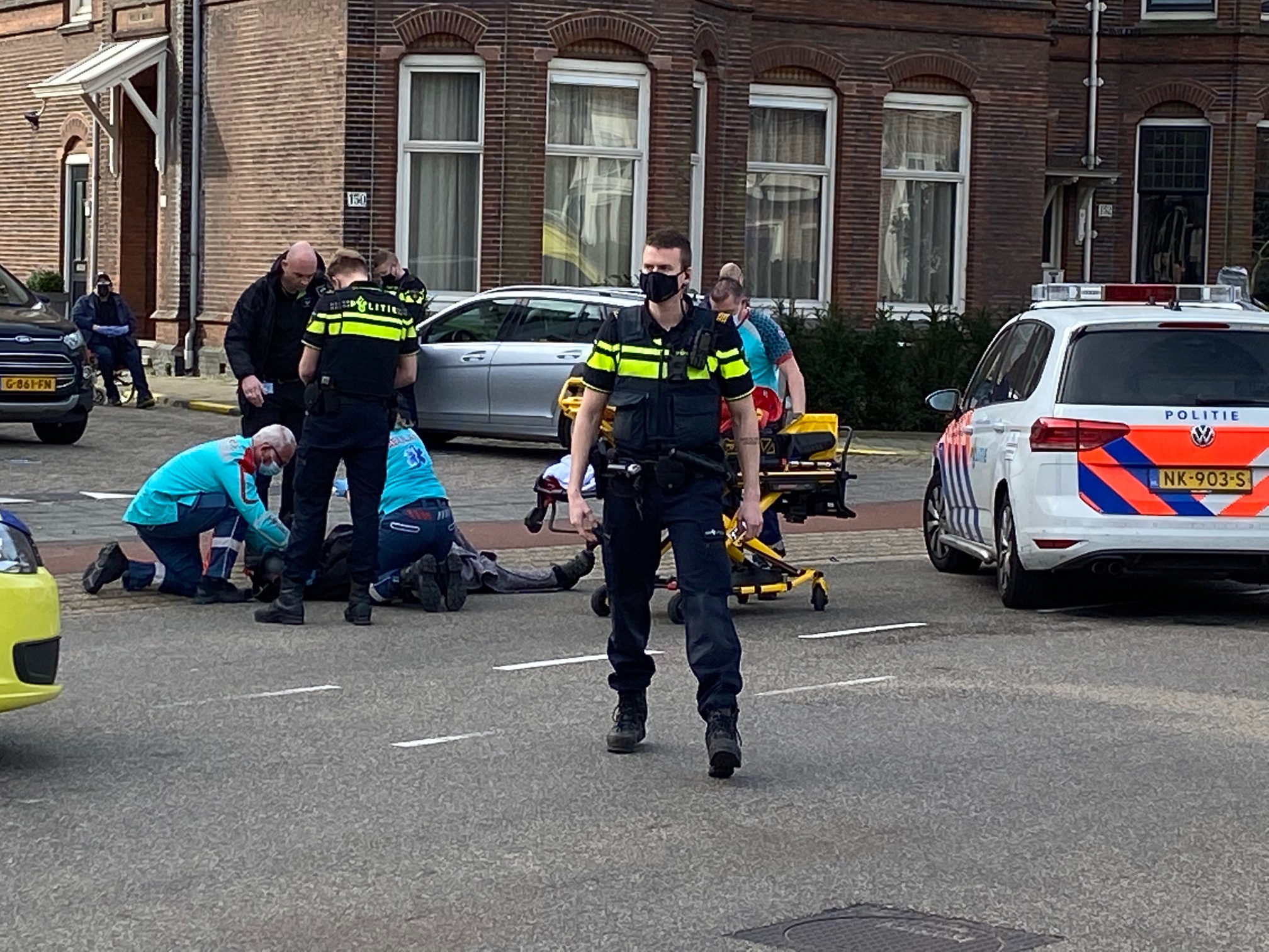 Op de kruising Zijlweg-Julianalaan is donderdagochtend rond 11 uur een botsing tussen een scooter en een afslaande auto geweest. De scooterrijder belandde op straat terwijl omstanders en hulpdiensten toesnelden. Een sneldenkende verhuizer nam een deken mee voor de gewonde man. Onze verslaggever zag hoe het slachtoffer met hulp van ambulancebroeders zelf opstond en op een brancard kon plaatsnemen. Hij is meegenomen terwijl de politie de zaak afhandelde met de bestuurder van de betrokken Mercedes en ooggetuigen. De precieze toedracht wordt nog onderzocht.