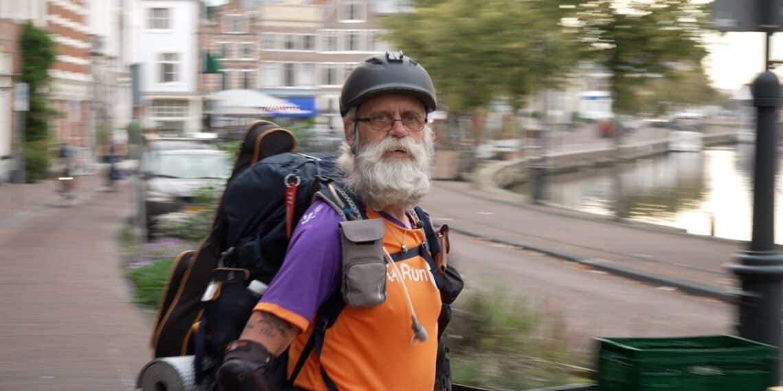 Op dit moment is hij onderweg naar Amsterdam, waar hij bij een vriend overnacht. “Onderweg geniet ik van de omgeving en filosofeer ik een beetje. Ik ben een huis-, tuin- en keukenfilosoof.” Over de aankomende hitte maakt hij zich geen zorgen. “Tijdens mijn tocht was het al een keer 34 graden, je moet gewoon even de supermarkt in om af te koelen in de airconditioning en rustig bewegen.”
