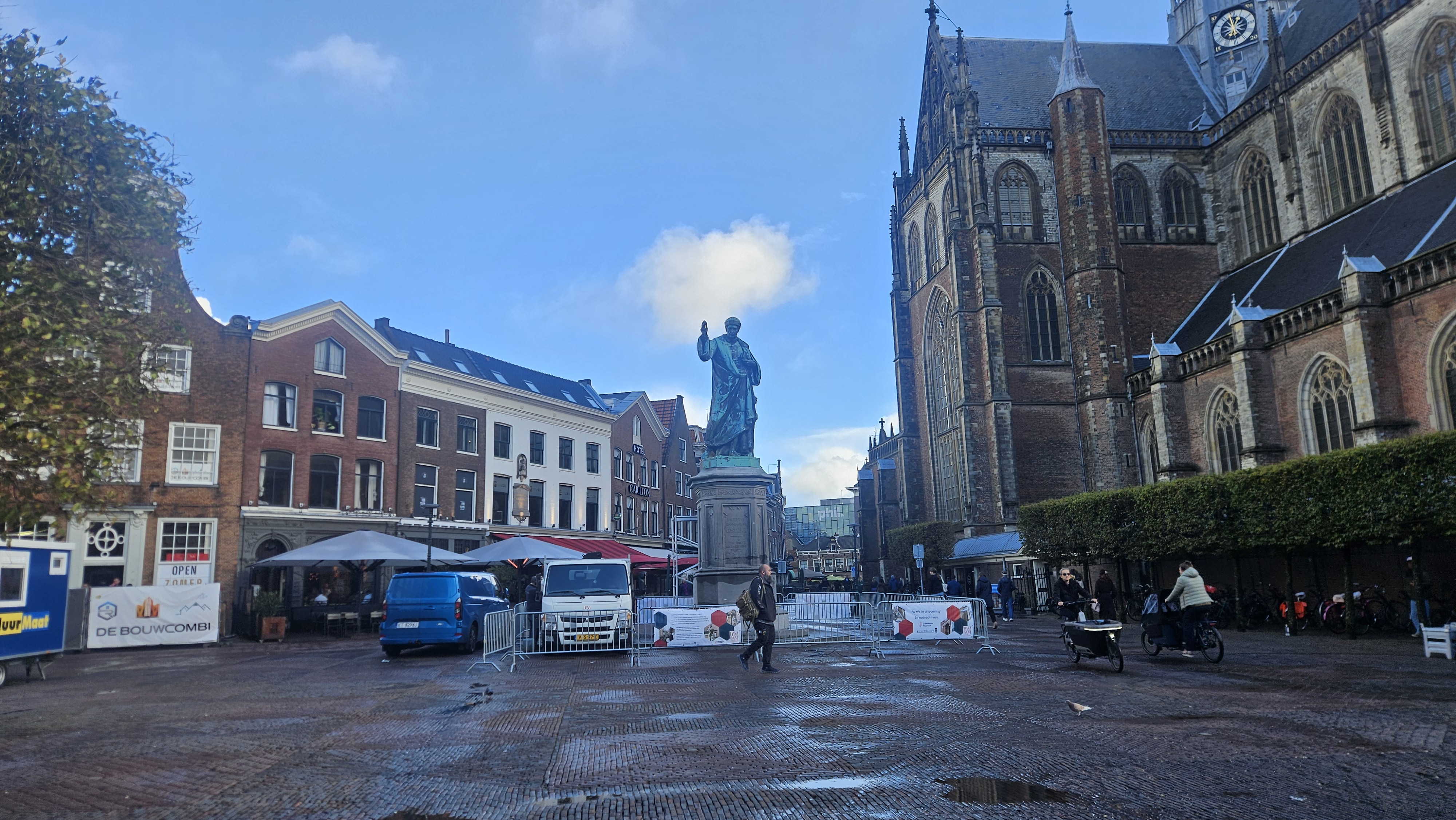 Voorbijgangers reageren positief op het onderhoud van het Haarlemse icoon. “Het is een mooi beeld, het hoort echt bij Haarlem”, zegt een omstander. “Haarlem is een drukstad en de legende gaat dat hij de boekdrukkunst heeft uitgevonden.” Een ander merkt op dat die legende overigens ook wordt betwijfeld.
