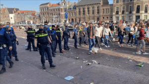 Verslaggever Jelle Dijkstra van NH Nieuws meldt aan Haarlem105 dat de sfeer iets grimmiger wordt. Sommige mensen komen in opstand tegen de ontruiming, maar dat wordt snel de kiem in gesmoord door de politie.