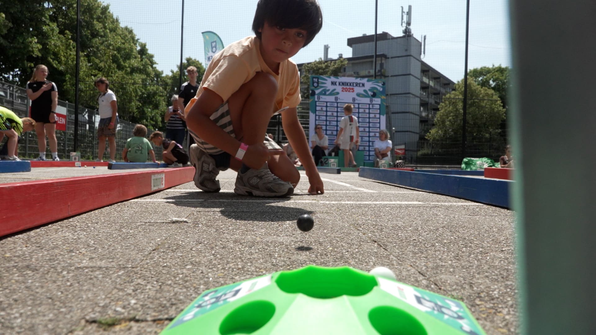 Deelnemende kinderen, sommigen bloedfanatiek, anderen vooral blij om op tv te komen, namen het in één-tegen-één wedstrijden tegen elkaar op. “Je gooit om de beurt vijf witte en vijf donkere knikkers richting het potje”, legt organisator Daan Koster uit. “Wie er als eerste tien in heeft of na vijf minuten de meeste knikkers, wint. Maar het draait uiteindelijk om die beslissende, tiende knikker. Daar zit de spanning!”