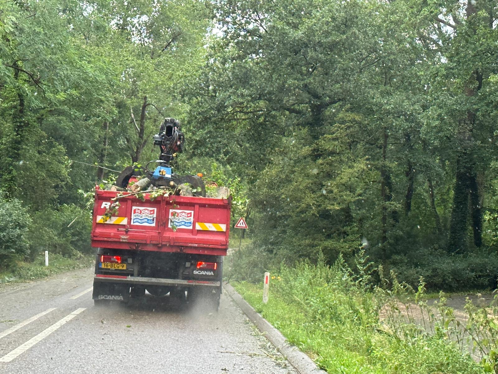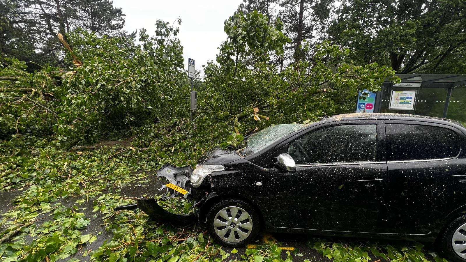 De storm laat flinke sporen achter. Er zijn al meerdere bomen omgevallen en voertuigen omgewaaid in de regio.