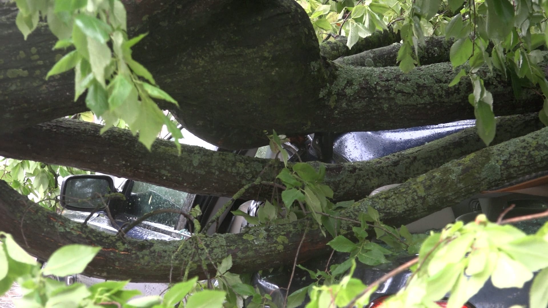 Een klein stukje verderop in de Molijnstraat zijn 6 bomen omgevallen, waarvan vier op huizen en een op een geparkeerde auto. De bewoners vertellen aan Haarlem105 geschrokken te zijn. “Ik dacht dat er een boekenkast omviel”, vertelt Marjan Timmer, haar dochter Dieuwke schrok enorm toen de boom op haar slaapkamer viel.