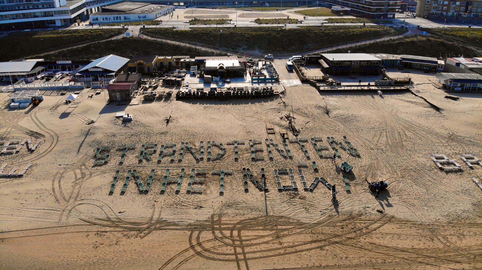 Langs de gehele Nederlandse kustlijn was vandaag vanuit de lucht de slogan ‘Strandtenten in het NOW’ te lezen. De woorden waren gevormd door strandbedden-, meubels en zelfs surfboards. Met deze noodkreet willen badplaatsen en strandexploitanten aandacht vragen voor het gat in de NOW- regeling, waardoor veel strandpaviljoens nu al op het punt van omvallen staan.