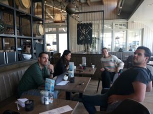 Verslaggever Albert de Gelder in gesprek met de initiatiefnemers in Zandvoort: Niels Priester, Huig Molenaar, Carlijn Bijker en Kiria Logtenberg.