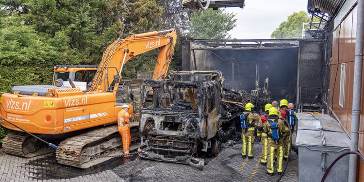 Supermarkt blijft ’tot nader order’ gesloten na brand, uitgebrande vrachtwagen weggesleept