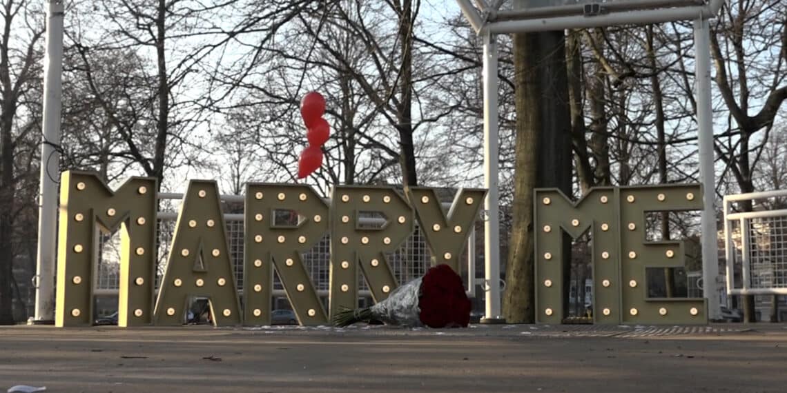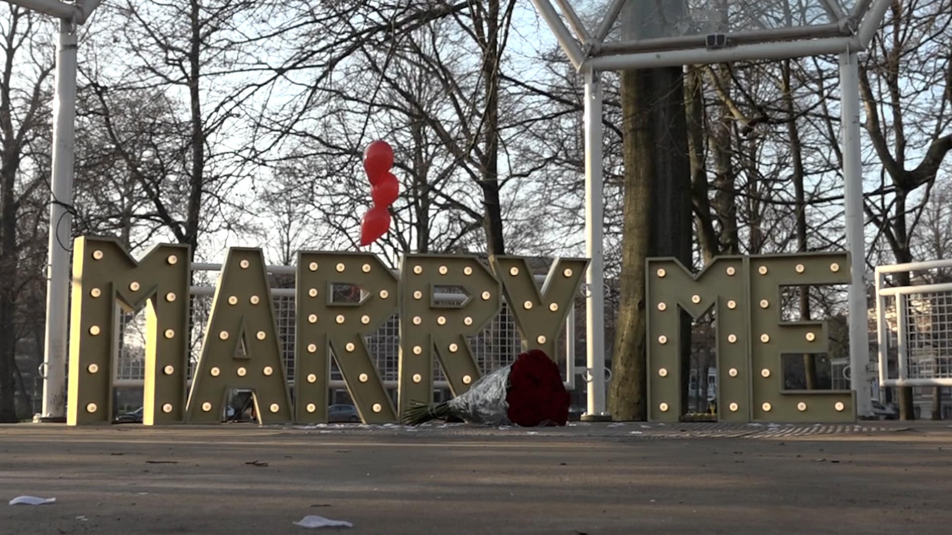 In de Haarlemmerhout was er een romanticus die nog een stapje verder ging en groots uitpakte met een huwelijksaanzoek. Hij huurde het Haarlemse bedrijf van de gebroeders Ciblak in. “Het is voor ons de drukste dag van het jaar, wij hebben vandaag wel 12 aanzoeken”, vertelt Harun Ciblak van MarryMe event Planning.