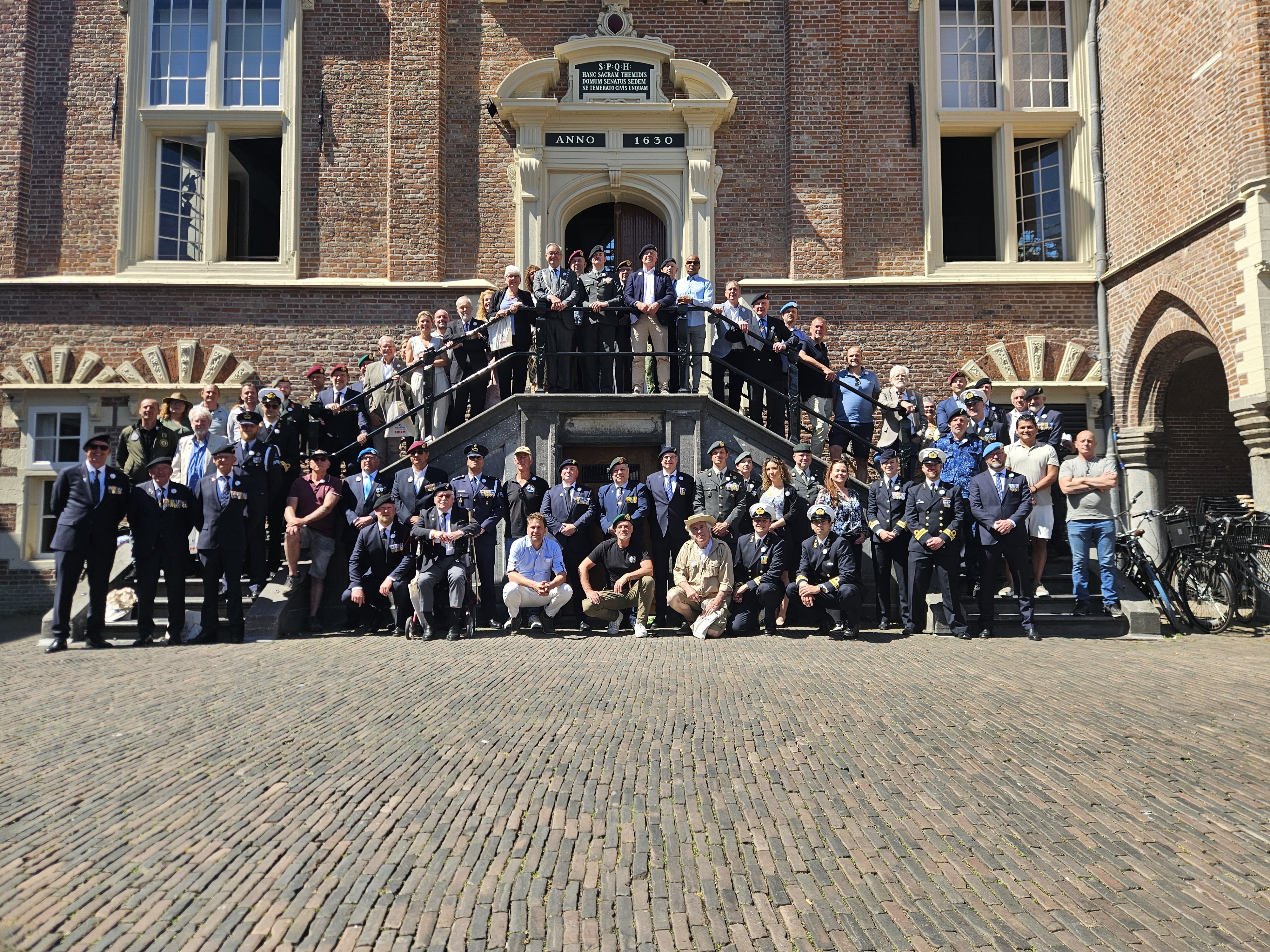 De Haarlemse veteranen poseren na de lunch voor het stadhuis