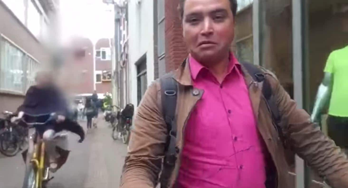 Net als hij een vlog maakt over ‘fietsenchaos in de Haarlemse binnenstad’, krijgt raadslid Moussa Aynan het zaterdag aan de stok met een fietsster die hem al rijdend een douw geeft. In de Jacobijnestraat filmt hij geparkeerde fietsen wanneer de vrouw achter hem twee keer met haar fietsbel belt.