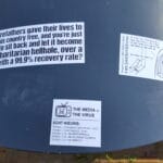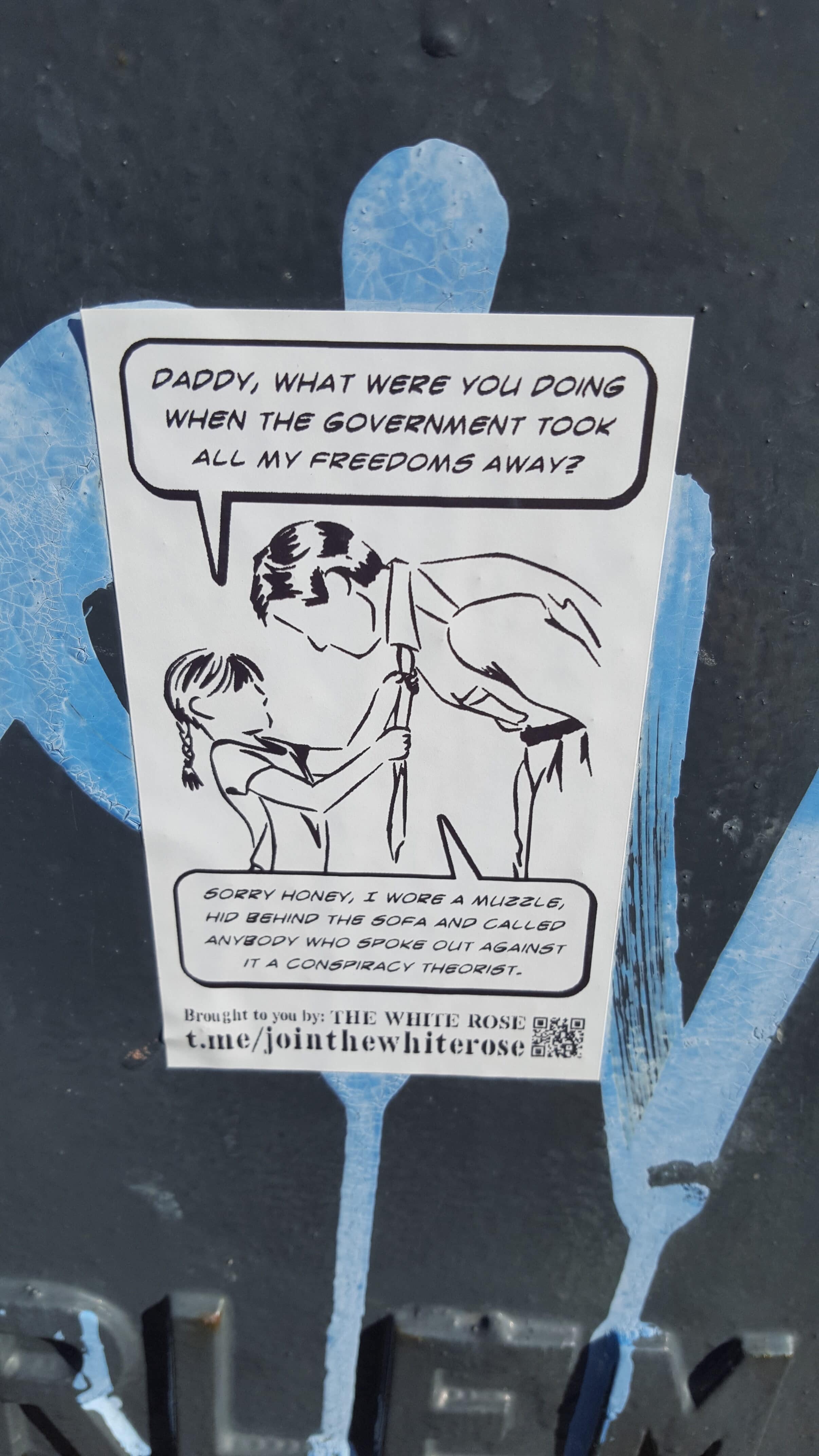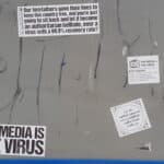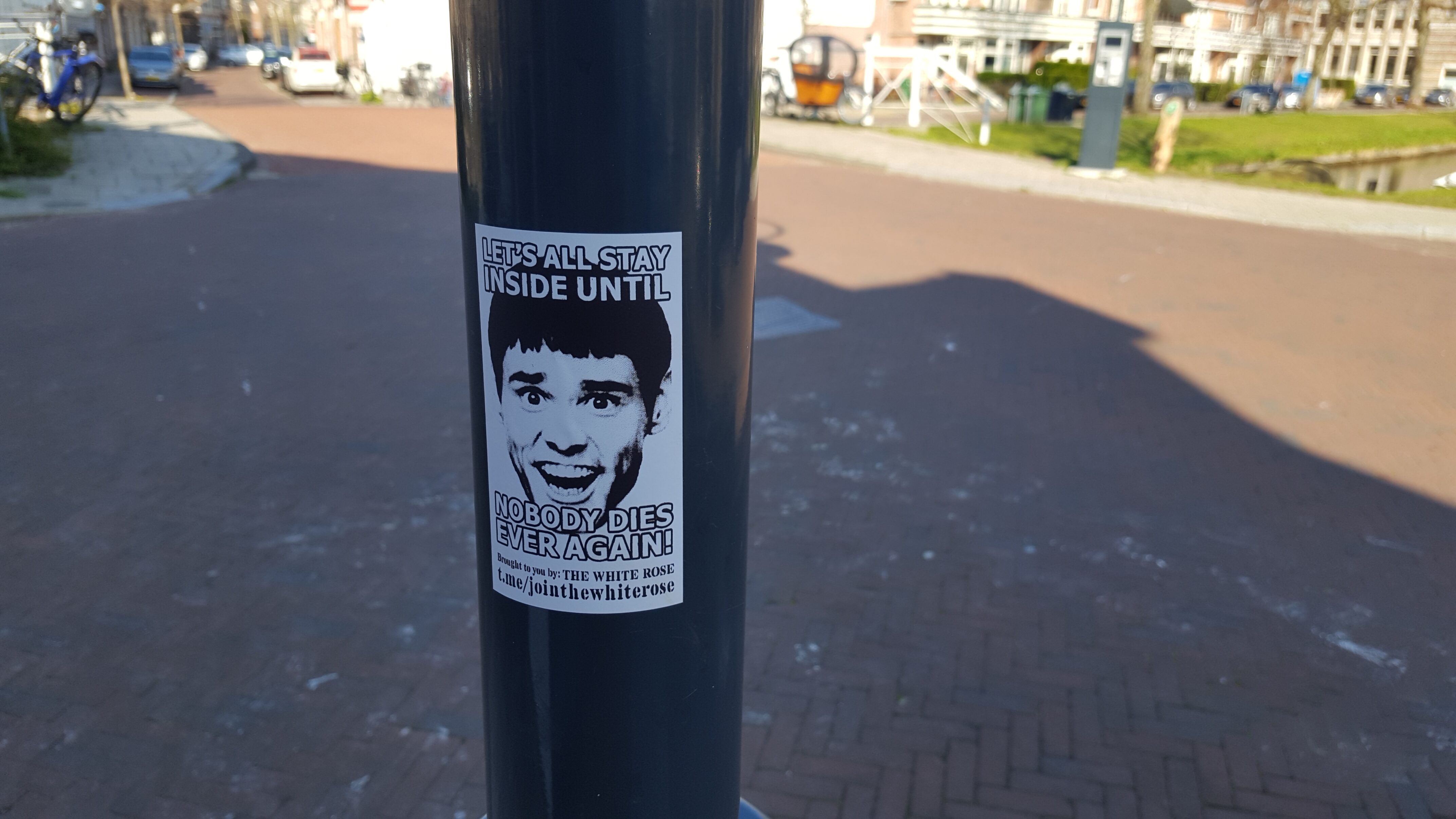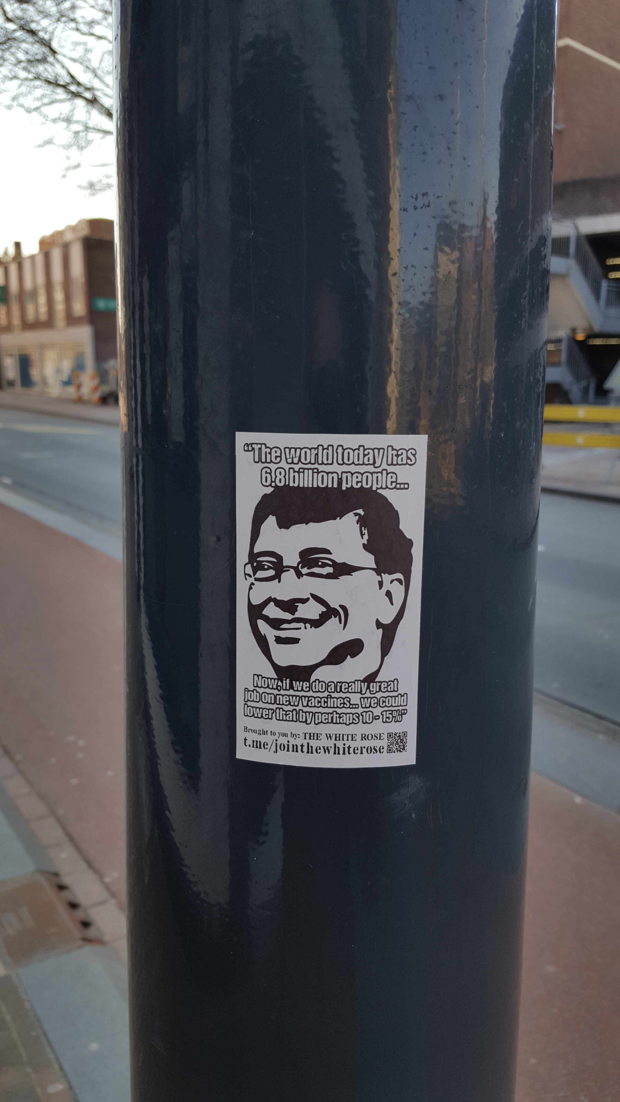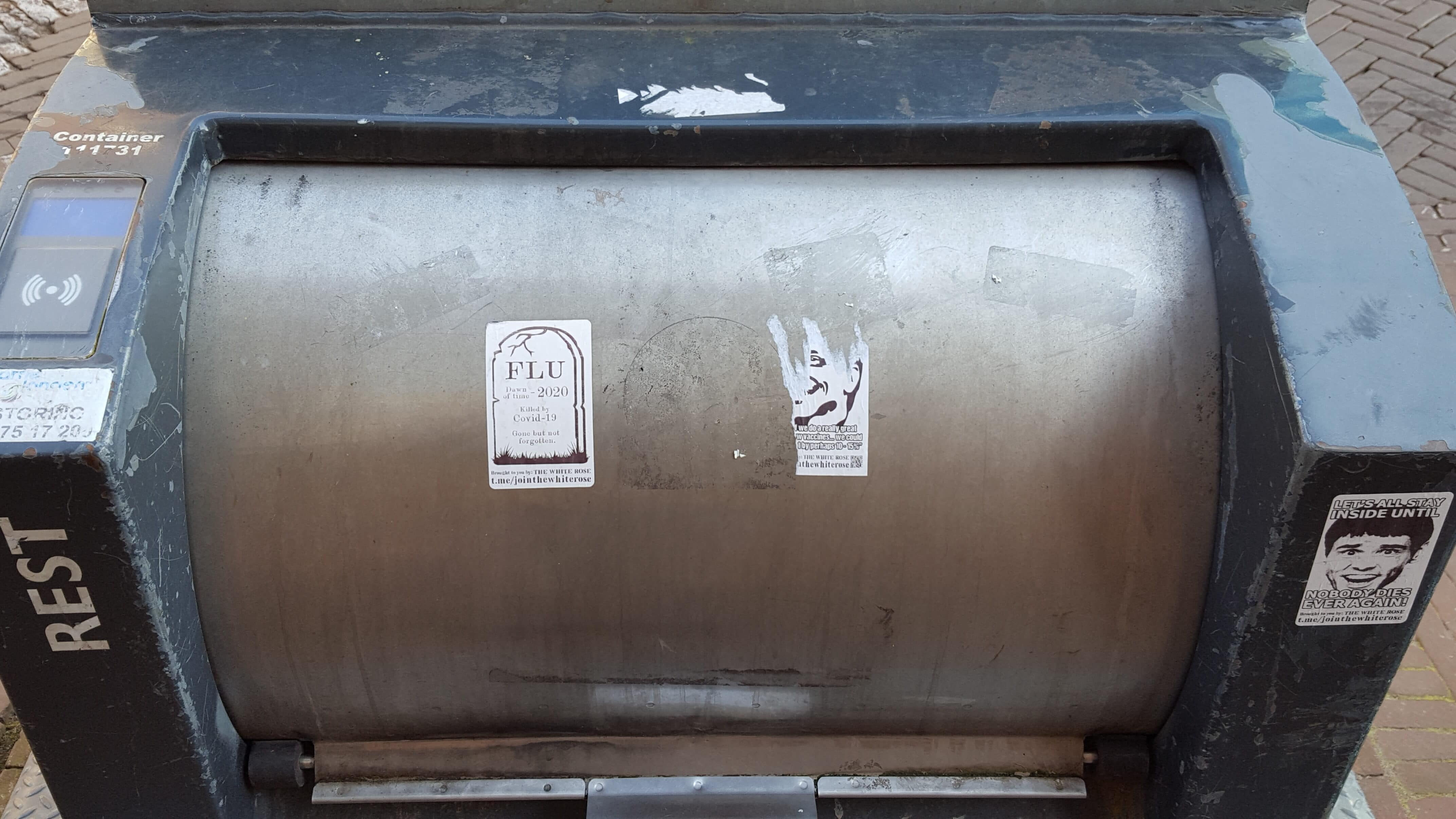 Een bijnaam hebben de anonieme plakkers wel. Intussen staan ze al een tijdje bekend als de coronawappies. De bijnaam die zij als snel in de media toebedeeld kregen. Soms wordt er verwezen naar websites met ‘het echte’ nieuws. Maar de boodschap is duidelijk. Vaccins zijn gevaarlijk, de mainstream media zoals kranten, journaals en de bekendere nieuwssites kleuren het nieuws rond het virus en verscheidene complottheorieën, de een nog onwaarschijnlijker dan de volgende, zijn niet van de lucht. Haarlem105 heeft de in het wild gespotte stickers gefotografeerd, verzameld en gerangschikt. De kiekjes, met daarop afwisselend Nederlandse en Engelse teksten en leuzen, zijn geschoten in onder andere de Coornhertstraat, Pieter Kiesstraat, de omgeving van het ns-station, Donkere Spaarne, Groot Heiligland en in de buurt van de Haarlemse Stadsschouwburg. Een greep uit de op zijn minst opmerkelijke collectie.