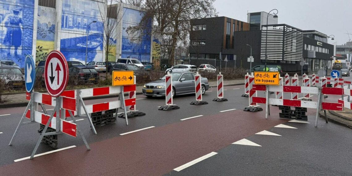 Auto’s kunnen rechtdoor bij de Leidsevaart, maar niet meer afslaan naar de Prins Hendrikbrug. Fietsers kunnen dat wel. Voor autoverkeer geldt tijdens de werkzaamheden een om-en-om-regeling. Voor fietsers is een fietssluis aangelegd richting de Zijlbrug.