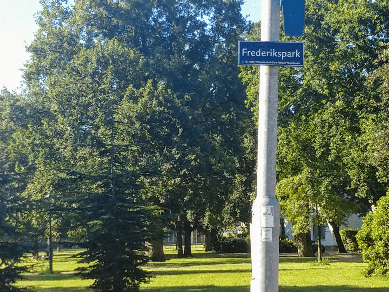 Op de plek op de foto, in het Frederikspark heeft van 1894 tot 1932 het Wilhelmina Brongebouw gestaan. Het gebouw werd neergezet in opdracht van de Maatschappij tot Exploitatie van Staalwaterbronnen. In 1892 werd deze opgericht met als doel, de inwoners van Haarlem te laten profiteren van de heilzame werking van bronwater uit een bron in Vijfhuizen.