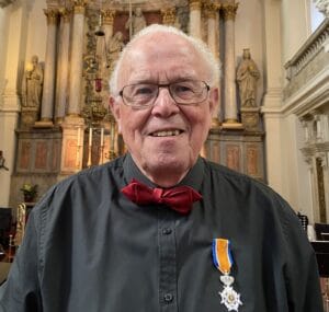 Dan gebeurt er iets bijzonders. De burgemeester van Heemstede, Astrid Nienhuis stapt het podium op en neemt het woord. Zij roept de heer Ad Hop (90), klarinettist van het orkest naar voren. “Viel het u niet op hoeveel familieleden op de eerste rij zitten?”, vraagt ze. “Nou, daar verbaasde ik me al over”, zegt Ad.