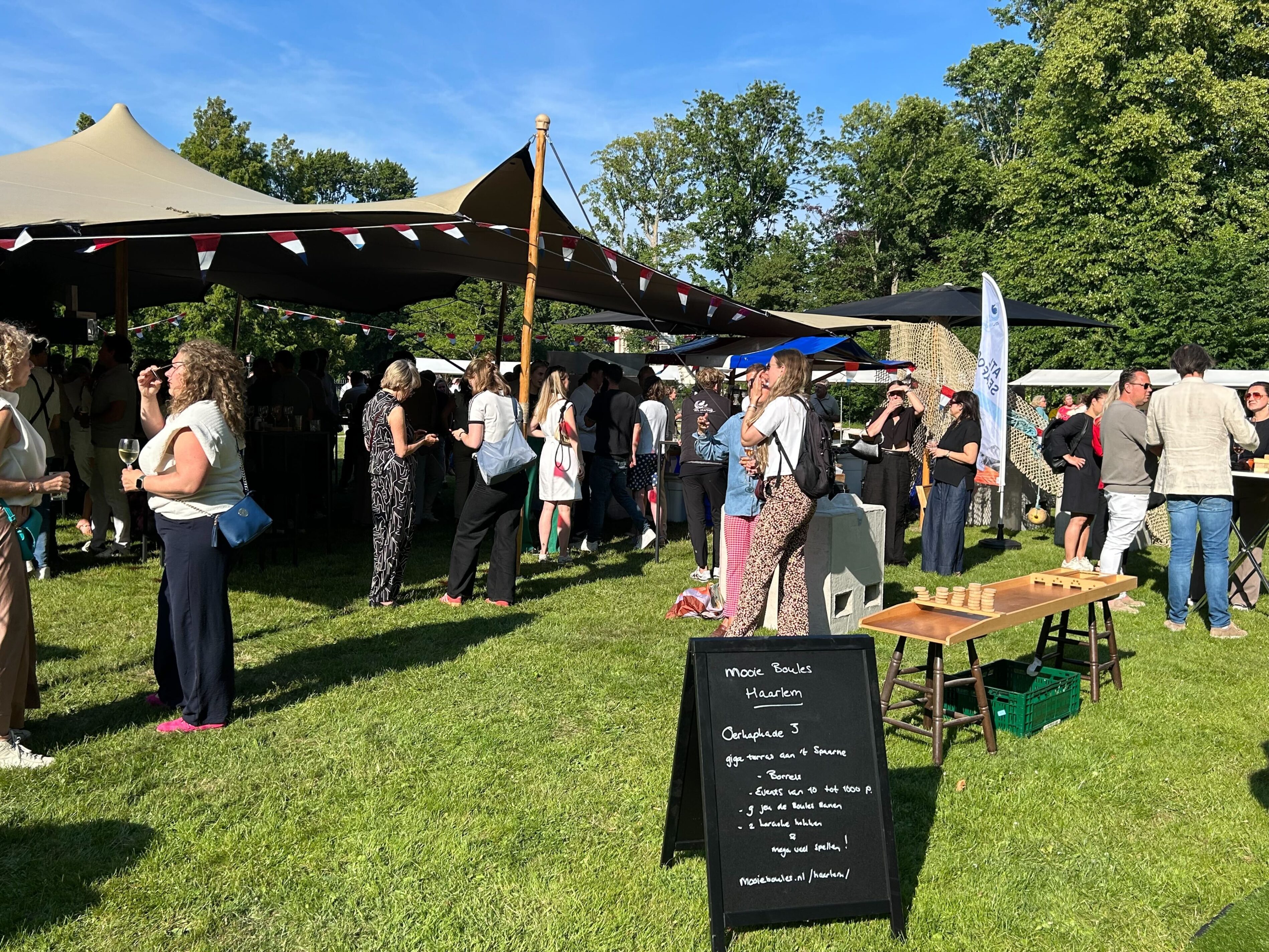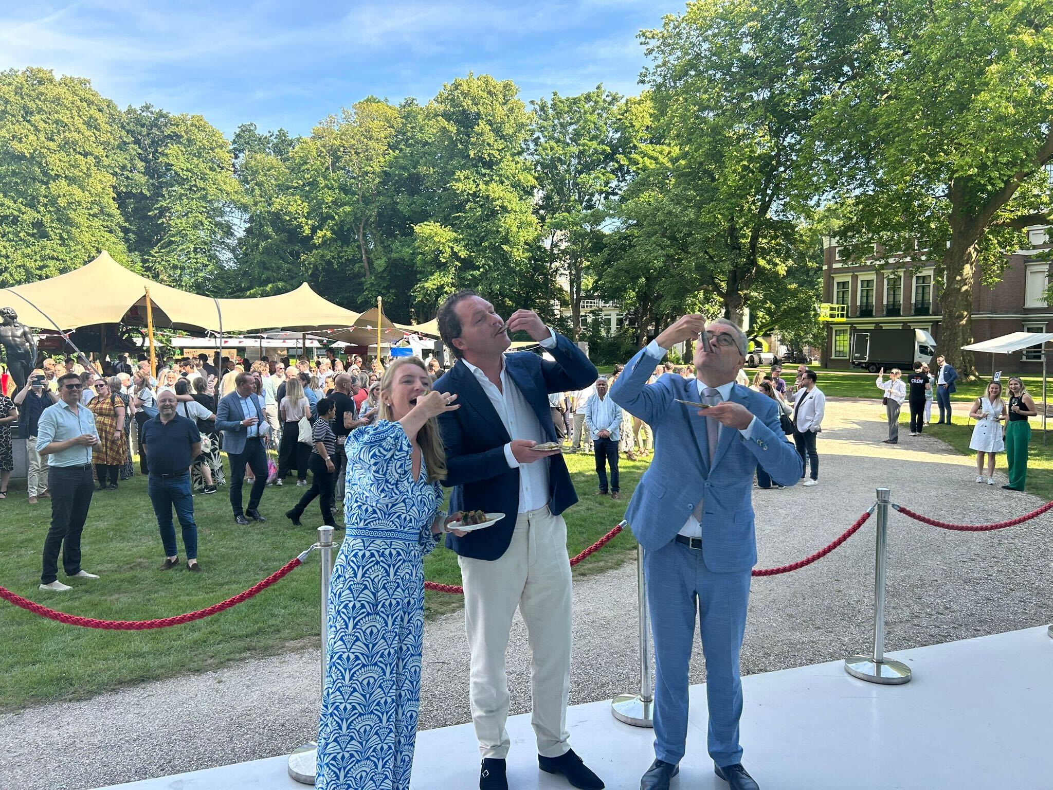 De tuin van het Noord-Hollandse provinciehuis in Haarlem stond gistermiddag volledig in het teken van de jaarlijkse haringparty, traditiegetrouw georganiseerd door Haarlem Marketing. Onder een stralende lentezon, met temperaturen rond de 23 graden, genoten ruim 300 bezoekers in de tuin van Paviljoen Welgelegen van haring én een breed scala aan andere lekkernijen.