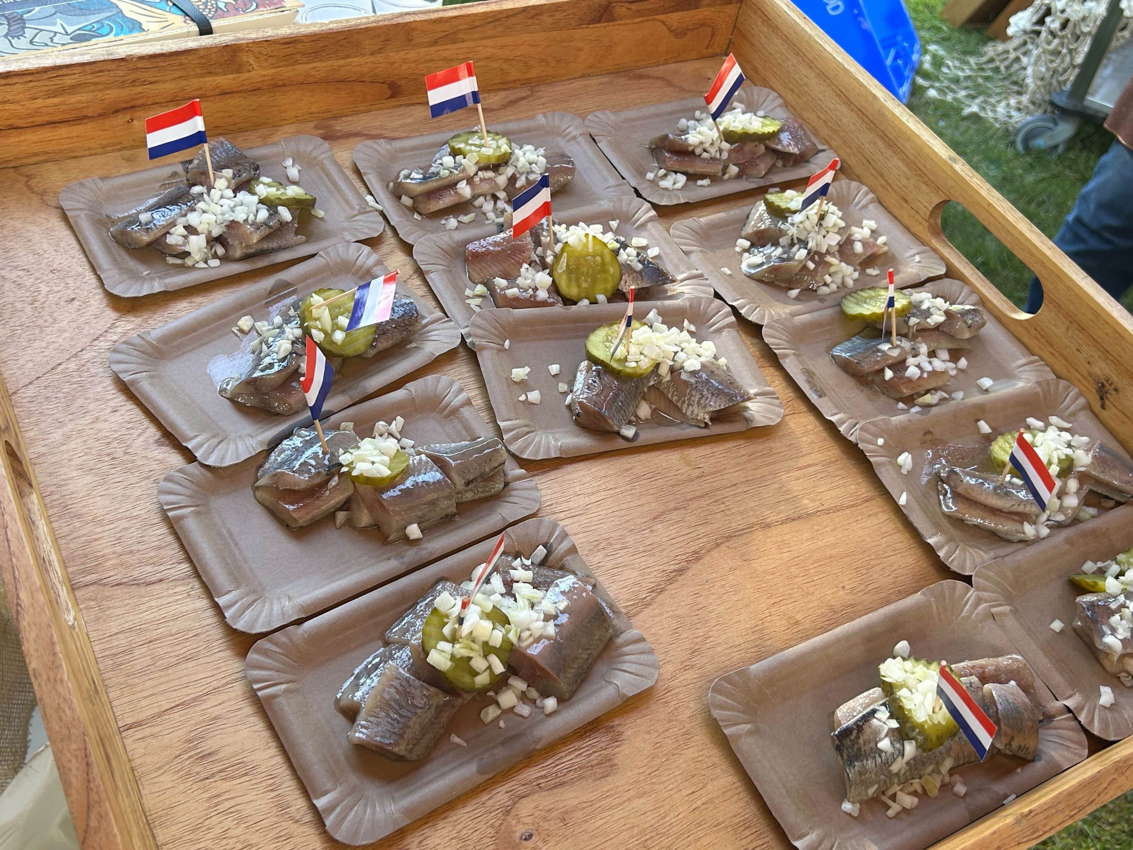 Net zoals vorig jaar was er veel meer te eten dan alleen Hollandse Nieuwe: oesters, (oesterzwam)bitterballen, (vegan) sushi en Italiaans ijs. Ook qua vloeibare versnaperingen was het goed vertoeven: witte wijn, rosé en koud bier. En veel water met citroen, want ondanks dat de vijf al in de klok zat, scheen de zon volop en tikte de thermometer 23 graden aan.